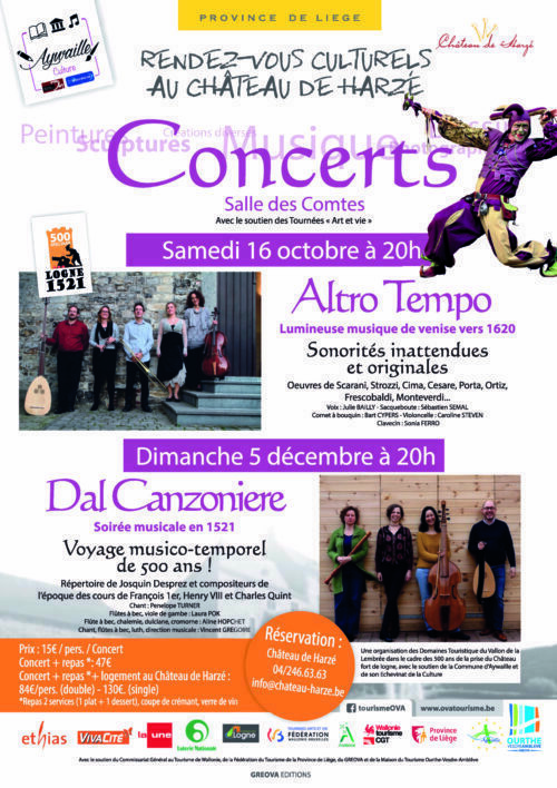 Afin d’agrémenter la soirée, différentes formules combinant concert, repas au Château de Harzé et/ou nuitée au Château sont également proposées :